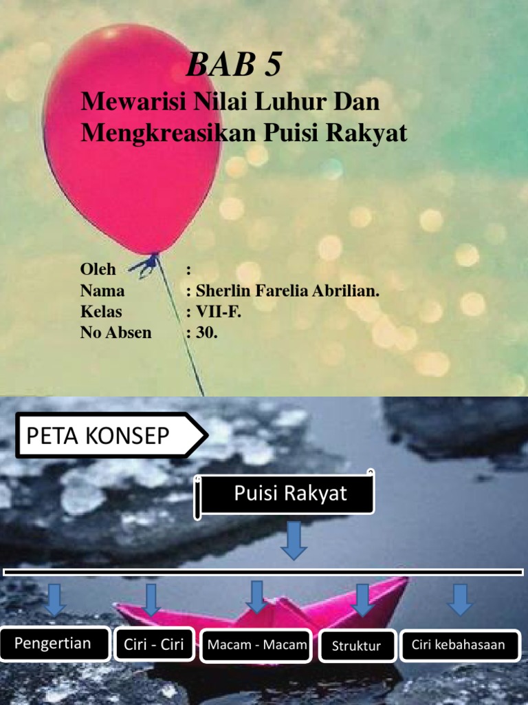 Semoga media pembelajaran power point yang admin bagikan kali ini dapat membantu Bapak dan Ibu guru dalam mencari referensi media pembelajaran power point Bahasa Indonesia yang singkat padat dan jelas. Ringkasan Materi kelas 7 BAB Puisi Rakyat LESTARIKAN BUDAYA LELUHUR DENGAN PUISI RAKYAT Puisi rakyat adalah warisan bangsa yang berupa puisi syair pantun dan gurindam yang memiliki nilai pesan moral agama dan budi pekerti.