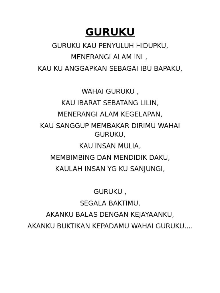 Nov 25 2020 Di tanah air Hari Guru akan jatuh dan diperingati pada tanggal 25 November setiap tahunnya. Guru sendiri merupakan salah satu pahlawan pendidikan dimana guru bekerja tanpa kenal lelah membuat anak bangsa jauh lebih baik. Aug 29 2014 Kumpulan puisi guru kali ini merupakan puisi-puisi untuk guru sebagai penghargaan dari para penulis yang di persembahkan kepada para guru yang bergelar guru pahlawan tanpa tanda jasa.