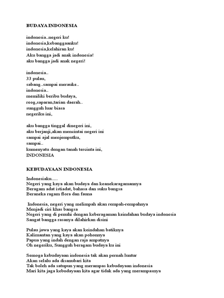 Gugusan pulau yang saling membentang dari sudut barat hingga sudut timur. Inilah contoh puisi tentang keberagaman dan ulasan lain mengenai hal hal yang masih ada kaitannya dengan contoh puisi tentang keberagaman yang anda cari. Sebagaiman diketahui definisi dari budaya merupakan suatu cara hidup yg berkembang serta di miliki bersama oleh sebuah kelompok serta di wariskan dari generasi ke generasi selanjutnya begitulah sekilas kata kata tentang budaya nusantara.