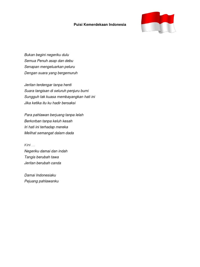 Puisi tentang keberagaman indonesia. Kami terlahir berbeda dari setiap bagianmu. Puisi tentang indonesia adalah salah satu cara kita berusaha menunjukkan kecintaan kita kepada indonesia. Puisi kemerdekaan indonesia perjuangan dan pahlawan selalu kita baca untuk selalu mencintai negeri ini.