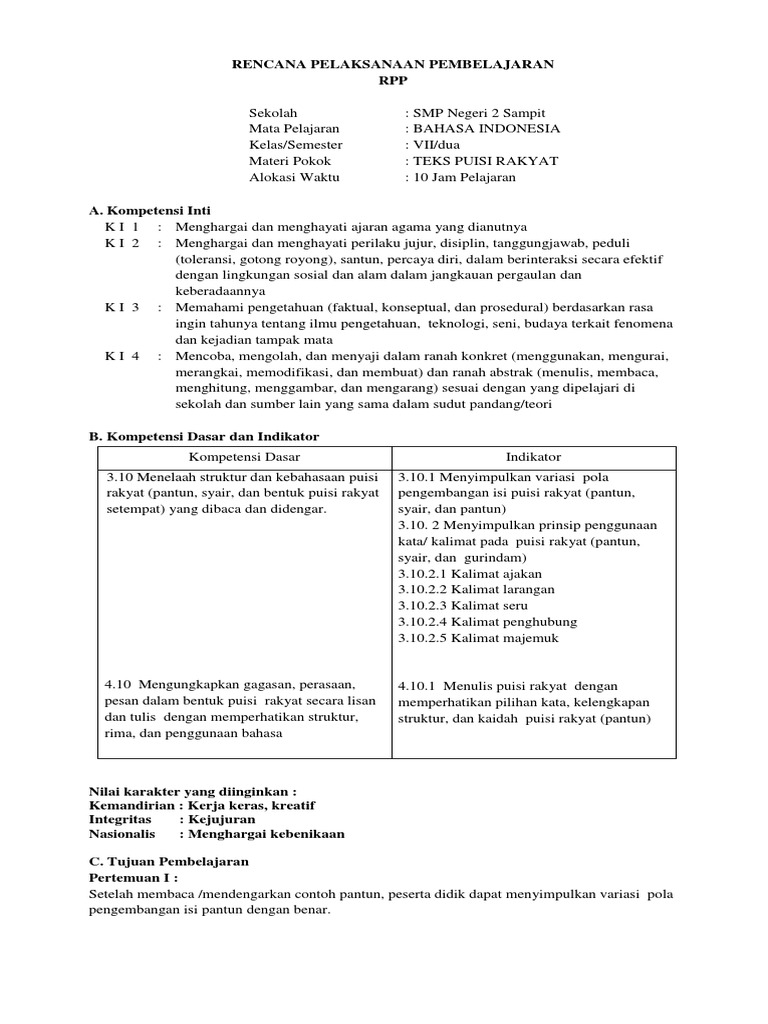 Bab V 2 Rpp Puisi Rakyat Kd 3 10 Dan 4 10 Docx
