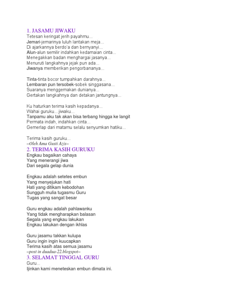 Puisi lama masih terikat dengan jumlah baris bait ataupun rima sajak. Yang Tak Pernah Berhenti Berkata. Entah berapa banyak tinta dan kapur yang tergores di papan sana.