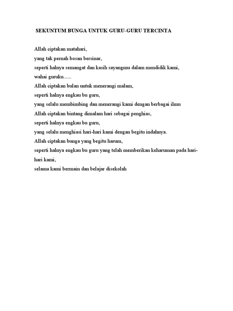 Mantra tidak mementingkan kata-kata 12. Hal inilah peran guru untuk mencerdaskan generasi muda terlebih untuk anak SD. Ada beberapa contoh puisi 3 bait atau 4 bait tentang ibu yang bisa sobat persembahkan.
