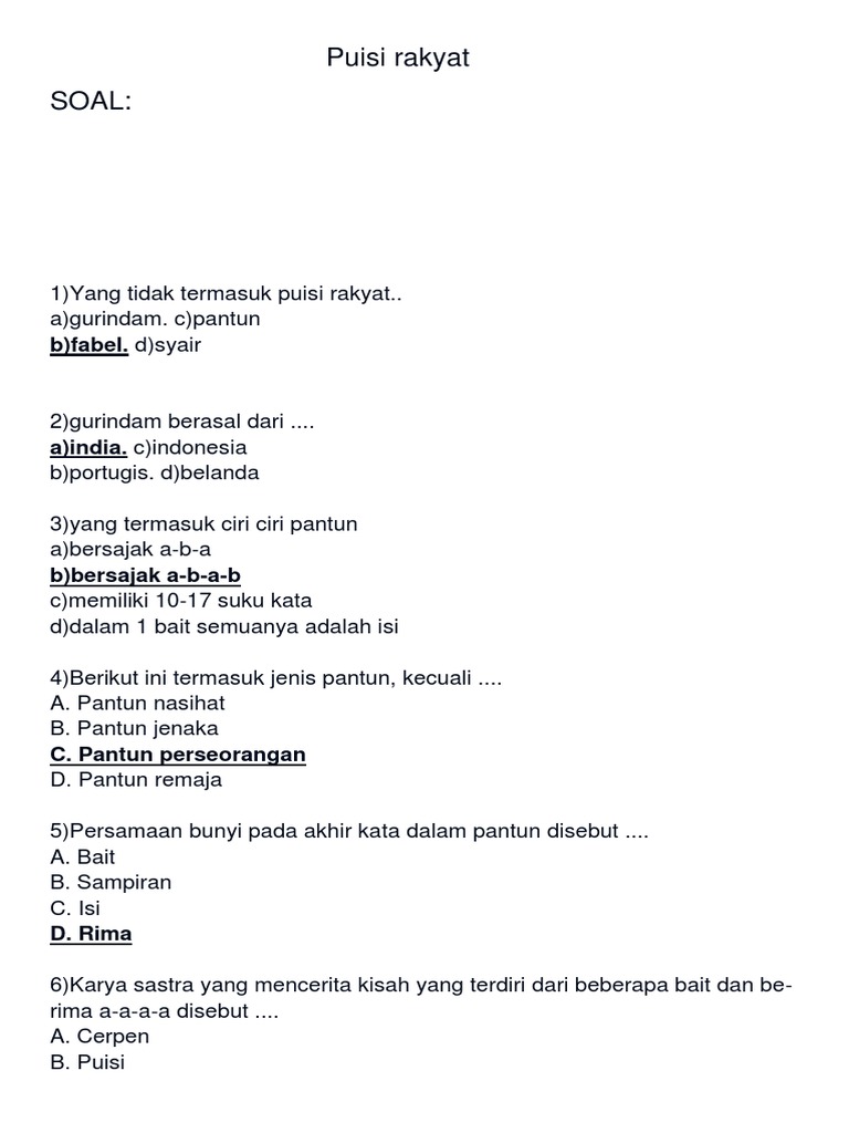 Contoh Soal Puisi Rakyat Pantun Syair Gurindam Kelas Vii