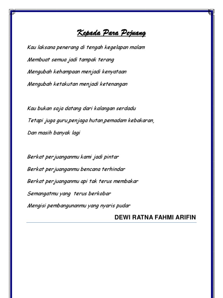 Puisi Tentang Cita Cita Menjadi Tentara Kt Puisi