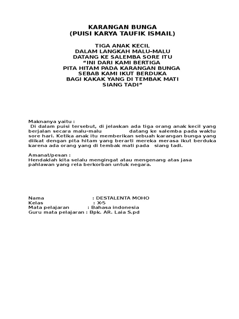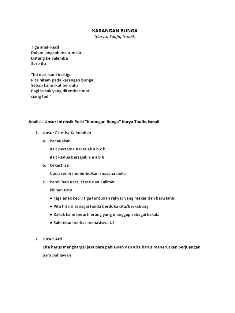 Oct 22 2014 Bentuknya terikat karena di dalam puisi mempunyai. Puisi adalah karangan yang dalam penyajiannya sangat mengutamakan tolong bantu soalnya hari ini kau dikumpul lagu tik - tik bunyi hujan amp. Puisi adalah tulisan yang dalam penyajiannya mengutamakan kegayaan kata.